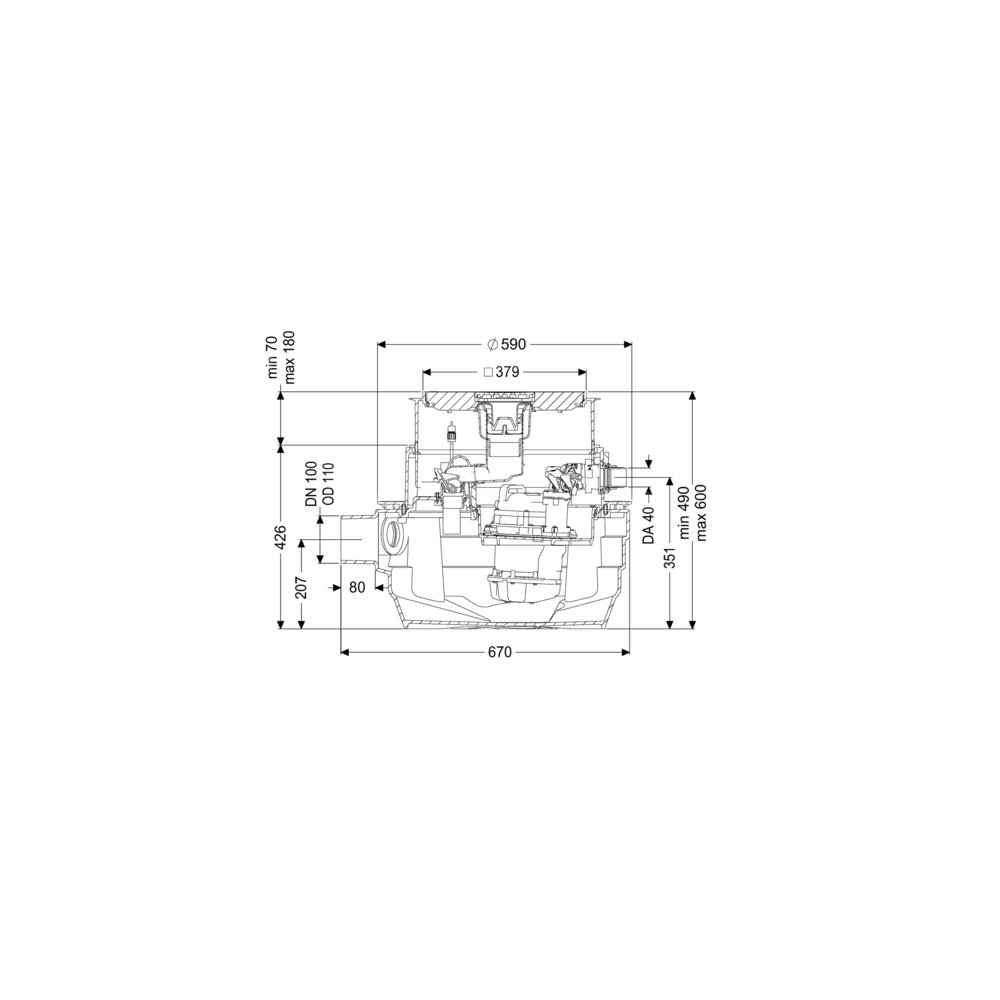 - Przyłącze odpowietrzające (DN): 70