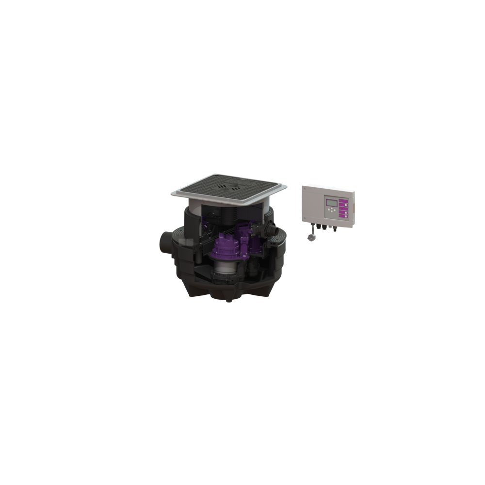 Przepompownia do ścieków zawierających fekalia i bez fekaliów jest wyposażony w jedną lub dwie pompy zatapialną oraz zawór zwrotny. Zbiornik wykonany z trwałego tworzywa sztucznego (PE) posiada zamkniętą komorę pompy. Zamknięcia jednoręczne umożliwiają łatwe wyjęcie zintegrowanych komponentów.