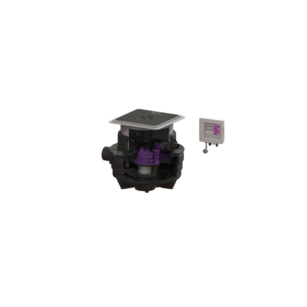 Przepompownia do ścieków zawierających fekalia i bez fekaliów jest wyposażony w jedną lub dwie pompy zatapialną oraz zawór zwrotny. Zbiornik wykonany z trwałego tworzywa sztucznego (PE) posiada zamkniętą komorę pompy. Zamknięcia jednoręczne umożliwiają łatwe wyjęcie zintegrowanych komponentów.