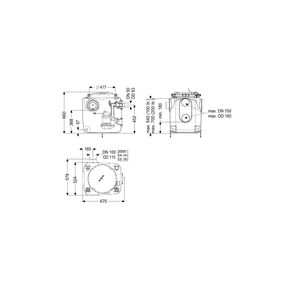 Gotowa do przyłączenia przepompownia do ścieków bez fekaliów jest wyposażony w jedną lub dwie pompy zatapialną oraz zawór zwrotny. Zbiornik wykonany z trwałego tworzywa sztucznego (PE) posiada otwartą komorę pompy. Zamknięcia jednoręczne umożliwiają łatwe wyjęcie zintegrowanych komponentów.