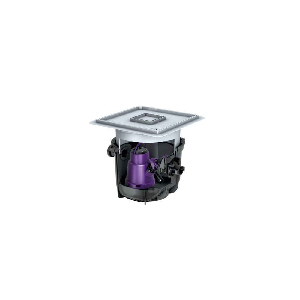 Gotowa do przyłączenia przepompownia do użytku w ograniczonym zakresie jest przystosowana do usuwania ścieków z pojedynczych miejsc odpływu. Pompę zatapialną z przełącznikiem pływakowym można łatwo wyjąć przy pomocy zamknięć jednoręcznych. Zbiornik wykonany z tworzywa sztucznego (PP) posiada otwartą komorę pompy i jest odporny na działanie agresywnych ścieków. Urządzenie do zabudowy w płycie podłogowej jest wstępnie zmontowane do montażu końcowego w miejscu instalacji.