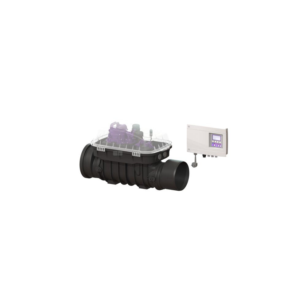 Urządzenie przeciwzalewowe klasy premium do ścieków zawierających fekalia i bez fekaliów jest wyposażone w pompę i system zamykania za pomocą silnika. W normalnym stanie przekrój rury jest otwarty. W przypadku przepływu zwrotnego system zamykania za pomocą silnika zostaje automatycznie zamknięty. Odprowadzanie w trakcie fazy przepływu zwrotnego odbywa się przez pompę ze zintegrowanym mechanizmem rozdrabniającym. Sterowanie następuje przy pomocy przyjaznego dla użytkownika urządzenia sterującego, które można opcjonalnie poprzez kontakt bezpotencjałowy włączyć w system zarządzania budynkiem lub które może poprzez złącze GSM generować komunikaty zbiorcze o alarmach i zakłóceniach.