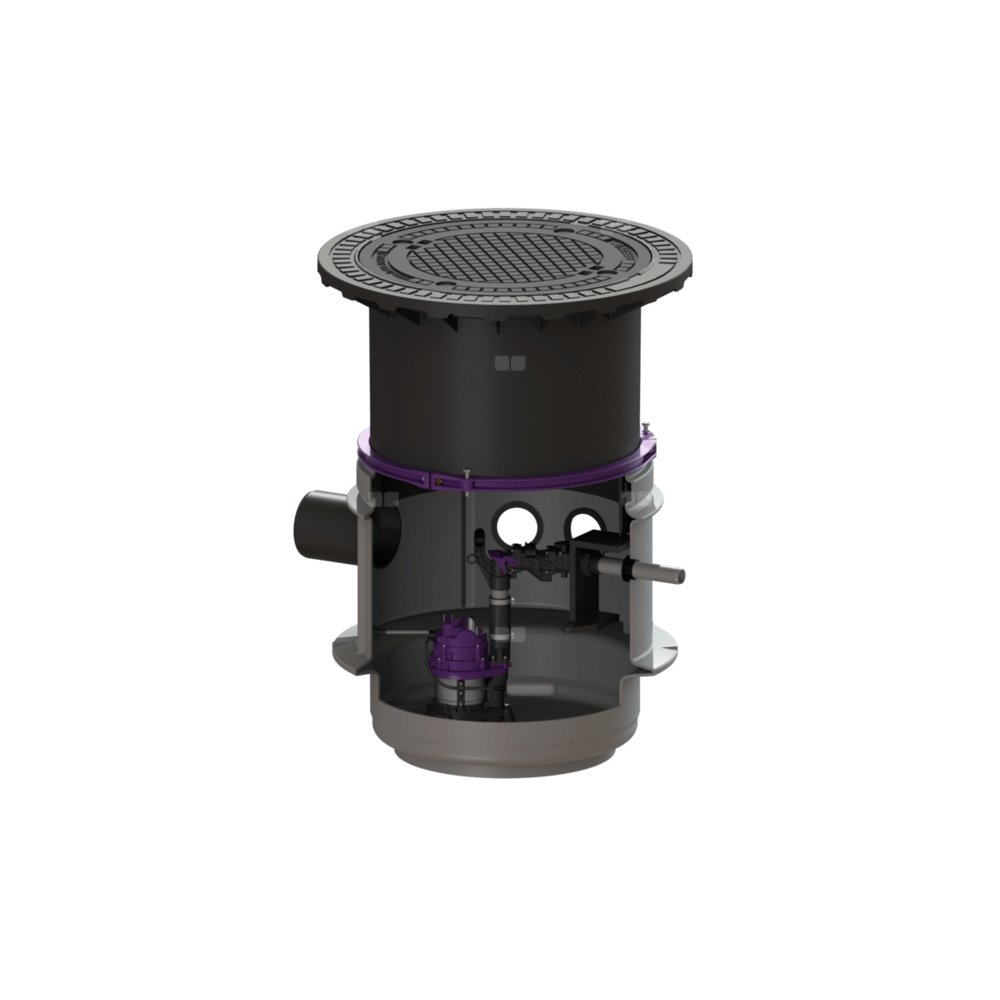Przepompownia do ścieków zawierających fekalia jest przystosowana do zabudowy w ziemi i wyposażona w klapę zwrotną do przewodu tłocznego. Zbiornik z PE-LLD jest odporny na agresywne czynniki i może być dostarczony z pokrywami w klasie obciążenia A, B lub D. Pompa z mechanizmem rozdrabniającym zapewnia najwyższe bezpieczeństwo pracy. Komponenty są wstępnie zmontowane do montażu końcowego w miejscu instalacji. Z płaszczyznami na podłączenie odpowietrzenia i rury osłonowej na przewody elektryczne.