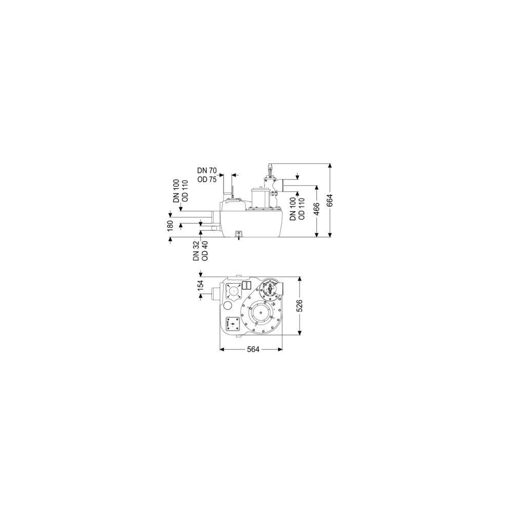 KESSEL Przepompownia Aqualift F Mono, ścieki fekalne, sterownik Standard, ustawienie swobodne, Pojedyncza jednostka, z pompą zatapialną SPF 1500, zasuwa odcinająca Zasuwa odcinająca z tworzywa sztucznego, króciec tłoczny poziomy