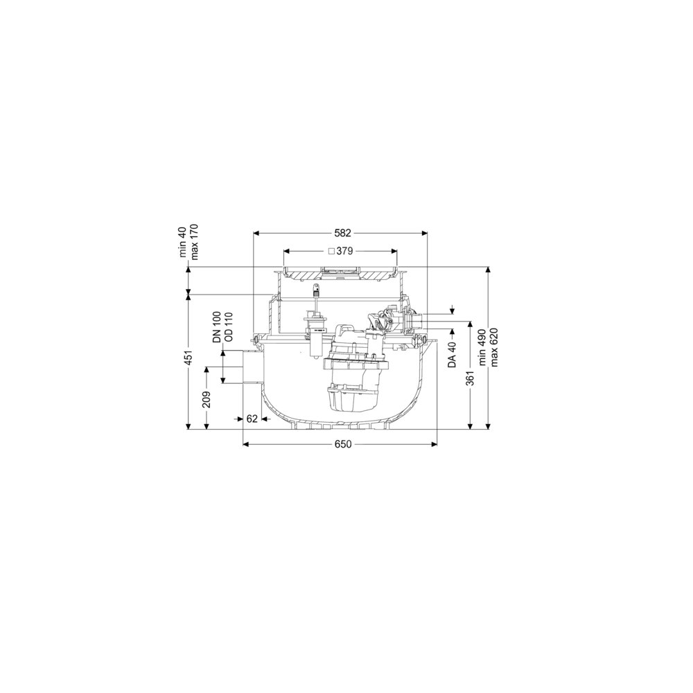 Gotowa do przyłączenia przepompownia do ścieków bez fekaliów jest wyposażony w jedną lub dwie pompy zatapialną oraz zawór zwrotny. Zbiornik wykonany z trwałego tworzywa sztucznego (PE) posiada otwartą komorę pompy. Zamknięcia jednoręczne umożliwiają łatwe wyjęcie zintegrowanych komponentów. Urządzenie do zabudowy w płycie podłogowej jest wstępnie zmontowane do montażu końcowego w miejscu instalacji.