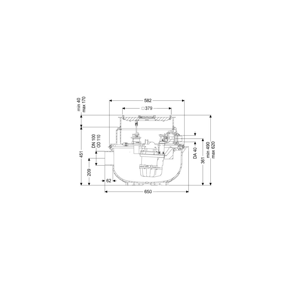 Gotowa do przyłączenia przepompownia do ścieków bez fekaliów jest wyposażony w jedną lub dwie pompy zatapialną oraz zawór zwrotny. Zbiornik wykonany z trwałego tworzywa sztucznego (PE) posiada otwartą komorę pompy. Zamknięcia jednoręczne umożliwiają łatwe wyjęcie zintegrowanych komponentów. Urządzenie do zabudowy w płycie podłogowej jest wstępnie zmontowane do montażu końcowego w miejscu instalacji.