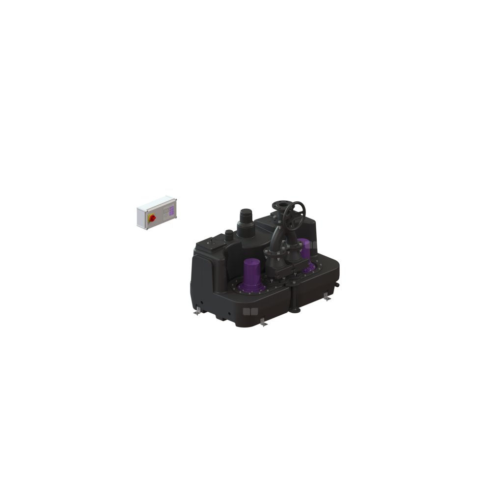Przepompownia do ścieków zawierających fekalia i bez fekaliów jjest wyposażony w jedną lub dwie pompy zatapialną oraz zawór zwrotny. Pojemnik zbiorczy wykonany z wytrzymałego tworzywa sztucznego (PE) oferuje uniwersalne możliwości podłączenia i posiada przykręcany otwór wyczystkowy.