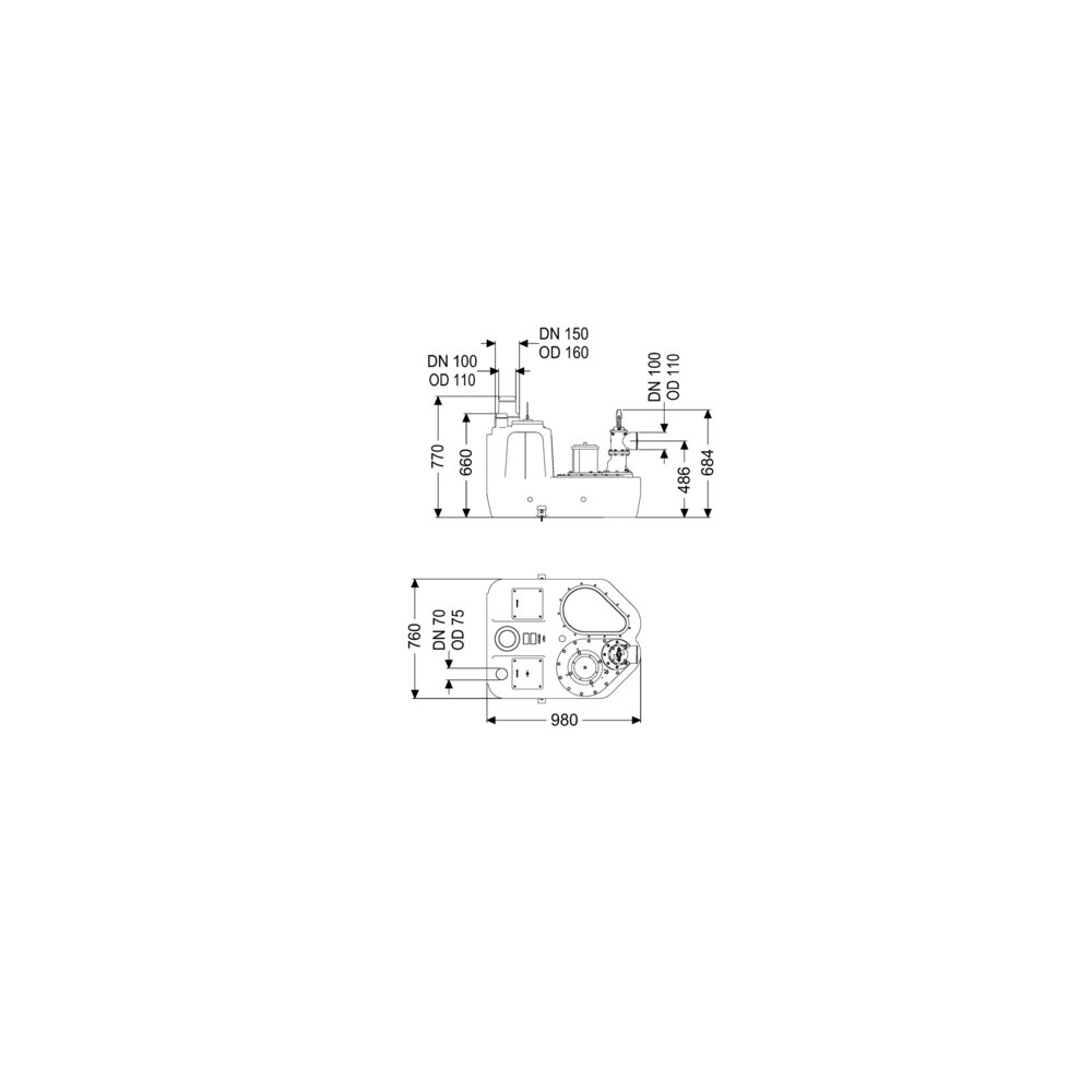 Przepompownia do ścieków zawierających fekalia i bez fekaliów jjest wyposażony w jedną lub dwie pompy zatapialną oraz zawór zwrotny. Pojemnik zbiorczy wykonany z wytrzymałego tworzywa sztucznego (PE) oferuje uniwersalne możliwości podłączenia i posiada przykręcany otwór wyczystkowy.