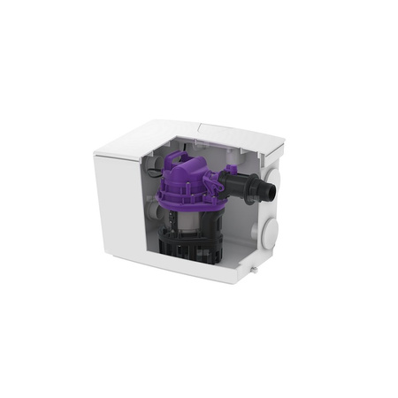 Mała przepompownia wewnętrzna Minilift S jest dostarczana w stanie gotowym do podłączenia i przeznaczona jest do usuwania ścieków domowych. Świetnie nadaje się do podłączenia do kabiny prysznicowej, wanny, umywalki, zlewozmywaka, pralki czy zmywarki. Pompę zatapialną z przełącznikiem pływakowym można łatwo wyjąć za zamknięcia obsługiwane jedną ręką. Zbiornik wykonany z tworzywa sztucznego posiada otwartą komorę pompy i jest odporny na działanie agresywnych ścieków. Dzięki licznym dopływom (4x DN 50 w poziomie, 1x DN 40 w pionie) i dwóm zamiennym otworom na odpływ urządzenie umożliwia uniwersalny i prosty montaż w miejscu zabudowy. - odporna na gorącą wodę i solankę - fabrycznie wbudowany zawór zwrotny po stronie tłocznej - wydajna pompa z wirnikiem Vortex dla najwyższego bezpieczeństwa pracy - konserwacja bez użycia narzędzi