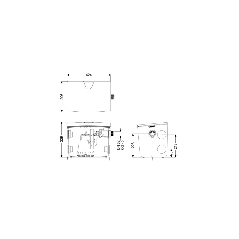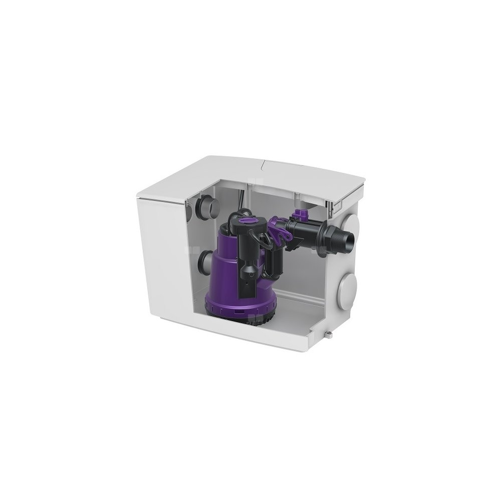 Mała przepompownia wewnętrzna Minilift S jest dostarczana w stanie gotowym do podłączenia i przeznaczona jest do usuwania ścieków domowych. Świetnie nadaje się do podłączenia do kabiny prysznicowej, wanny, umywalki, zlewozmywaka, pralki czy zmywarki. Pompę zatapialną z przełącznikiem pływakowym można łatwo wyjąć za zamknięcia obsługiwane jedną ręką. Zbiornik wykonany z tworzywa sztucznego posiada otwartą komorę pompy i jest odporny na działanie agresywnych ścieków. Dzięki licznym dopływom (4x DN 50 w poziomie, 1x DN 40 w pionie) i dwóm zamiennym otworom na odpływ urządzenie umożliwia uniwersalny i prosty montaż w miejscu zabudowy. - odporna na gorącą wodę i solankę - fabrycznie wbudowany zawór zwrotny po stronie tłocznej - wydajna pompa z wirnikiem Vortex dla najwyższego bezpieczeństwa pracy - konserwacja bez użycia narzędzi