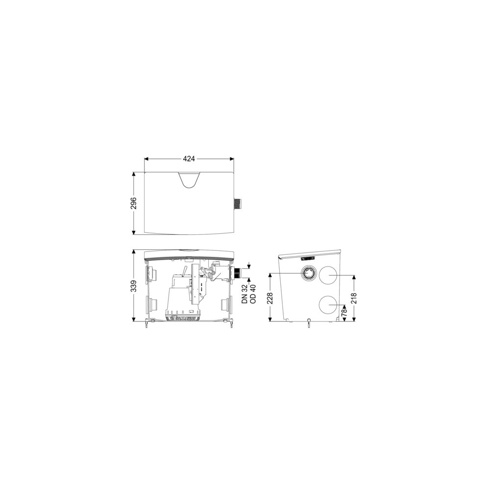 Mała przepompownia wewnętrzna Minilift S jest dostarczana w stanie gotowym do podłączenia i przeznaczona jest do usuwania ścieków domowych. Świetnie nadaje się do podłączenia do kabiny prysznicowej, wanny, umywalki, zlewozmywaka, pralki czy zmywarki. Pompę zatapialną z przełącznikiem pływakowym można łatwo wyjąć za zamknięcia obsługiwane jedną ręką. Zbiornik wykonany z tworzywa sztucznego posiada otwartą komorę pompy i jest odporny na działanie agresywnych ścieków. Dzięki licznym dopływom (4x DN 50 w poziomie, 1x DN 40 w pionie) i dwóm zamiennym otworom na odpływ urządzenie umożliwia uniwersalny i prosty montaż w miejscu zabudowy. - odporna na gorącą wodę i solankę - fabrycznie wbudowany zawór zwrotny po stronie tłocznej - wydajna pompa z wirnikiem Vortex dla najwyższego bezpieczeństwa pracy - konserwacja bez użycia narzędzi