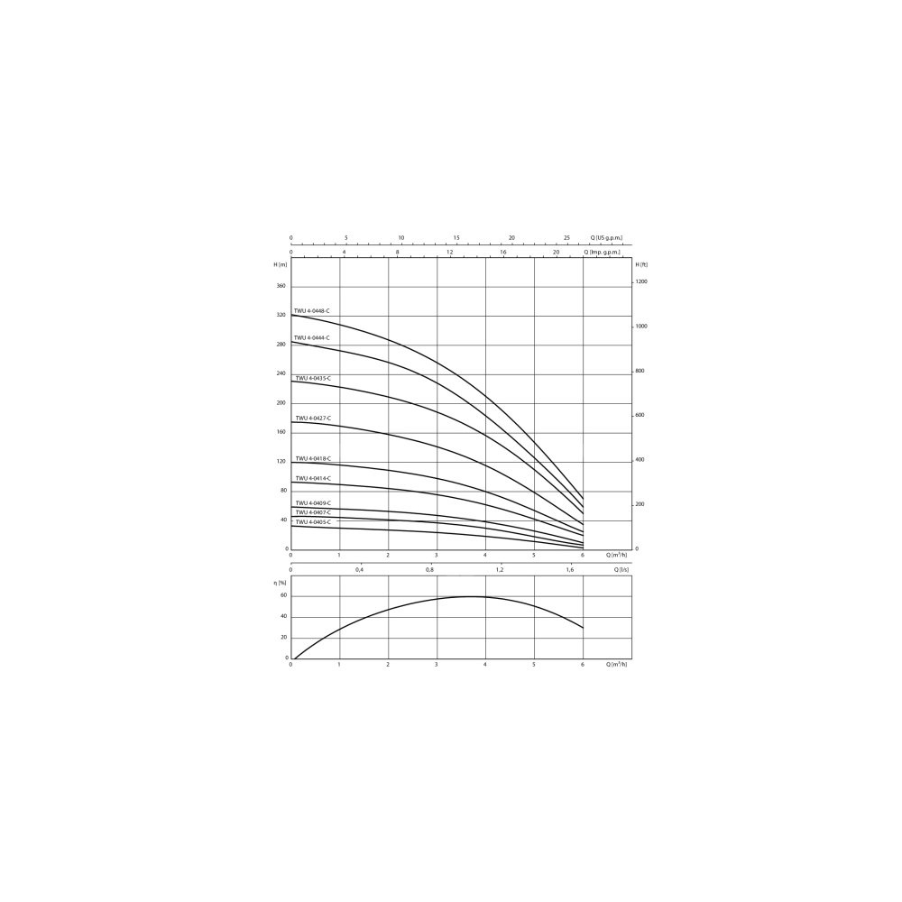Całkowicie zanurzona, wielostopniowa pompa głębinowa z promieniowymi lub półosiowymi wirnikami o budowie segmentowej do montażu pionowego lub poziomego, z wbudowanym zabezpieczeniem przed przepływem zwrotnym. Odporny na korozję silnik prądu zmiennego lub indukcyjny trójfazowy do rozruchu bezpośredniego, napełniony mieszaniną wody i glikolu. Hermetycznie zalany silnik z uzwojeniem emaliowanym, impregnowany żywicą, z łożyskami samosmarującymi. Chłodzenie silnika odbywa się poprzez przetłaczane medium. Dlatego podczas pracy urządzenie musi być zawsze zanurzone. Przy montażu poziomym konieczny jest płaszcz chłodzący.