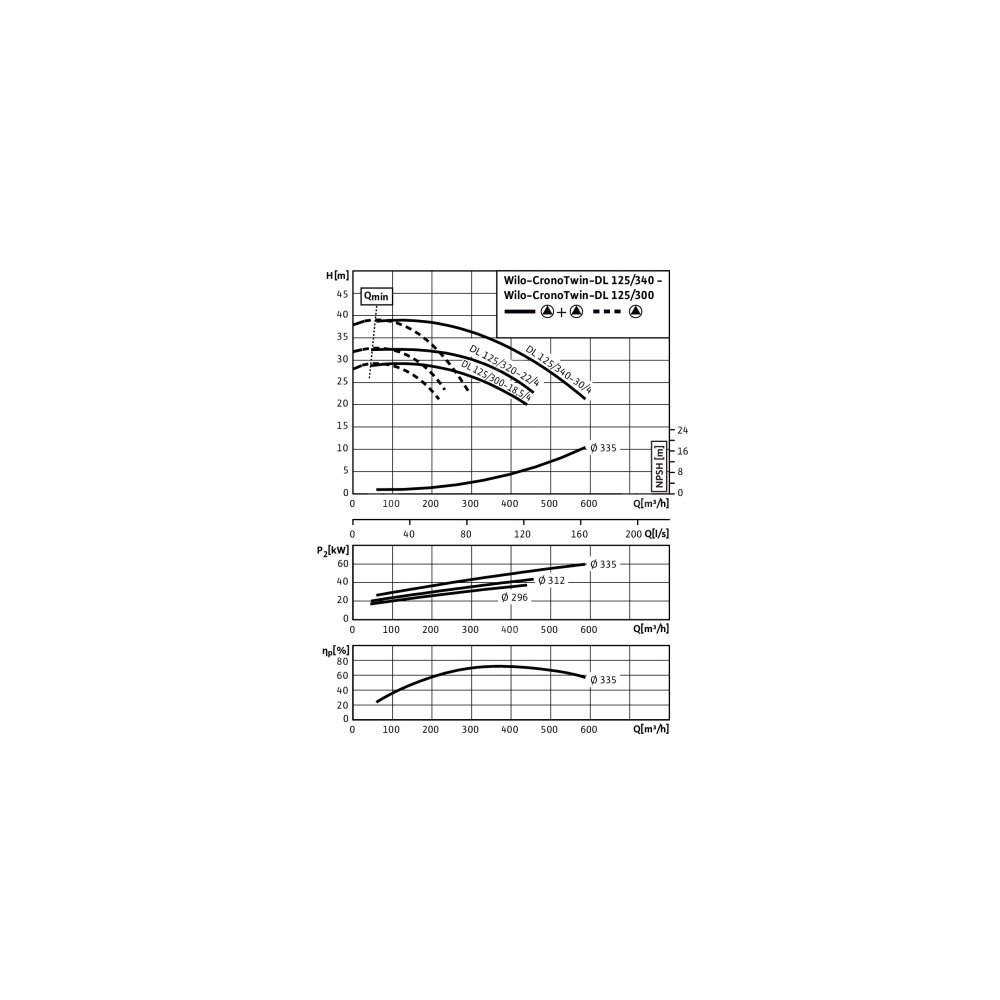 Pompa obiegowa WILO CronoTwin-DL 125/320-18,5/4-IE3 typu in-line z silnikiem znormalizowanym 50 Hz, moc silnika 18.5kW 34.3 A 1450 obr/min, wlot Kołnierz DN 125