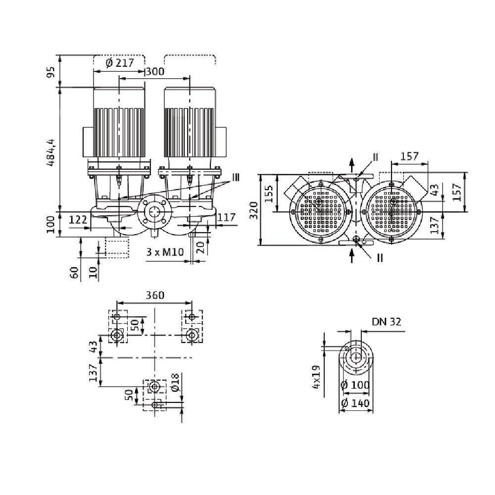 Pompa obiegowa WILO CronoTwin-DL 32/170-3/2-IE3 typu in-line z silnikiem znormalizowanym 50 Hz, moc silnika 3kW 6.15 A 2900 obr/min, wlot Kołnierz DN 32