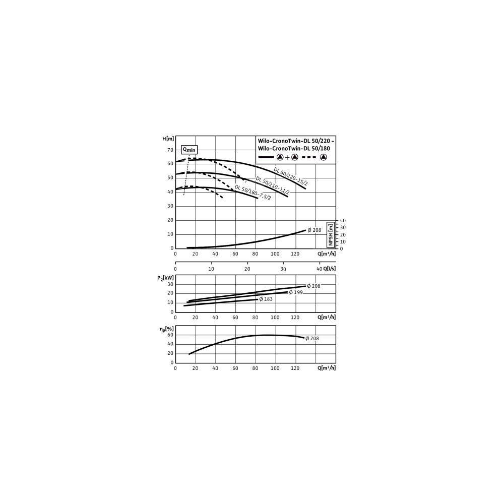 Pompa obiegowa WILO CronoTwin-DL 50/220-15/2-IE3 typu in-line z silnikiem znormalizowanym 50 Hz, moc silnika 15kW 26.8 A 2900 obr/min, wlot Kołnierz DN 50