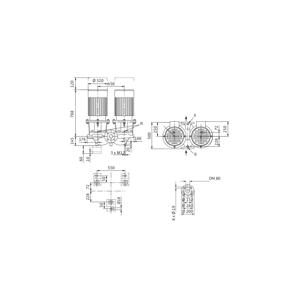 Pompa obiegowa WILO CronoTwin-DL 80/190-18,5/2-IE3 typu in-line z silnikiem znormalizowanym 50 Hz, moc silnika 18.5kW 31.8 A 2900 obr/min, wlot Kołnierz DN 80