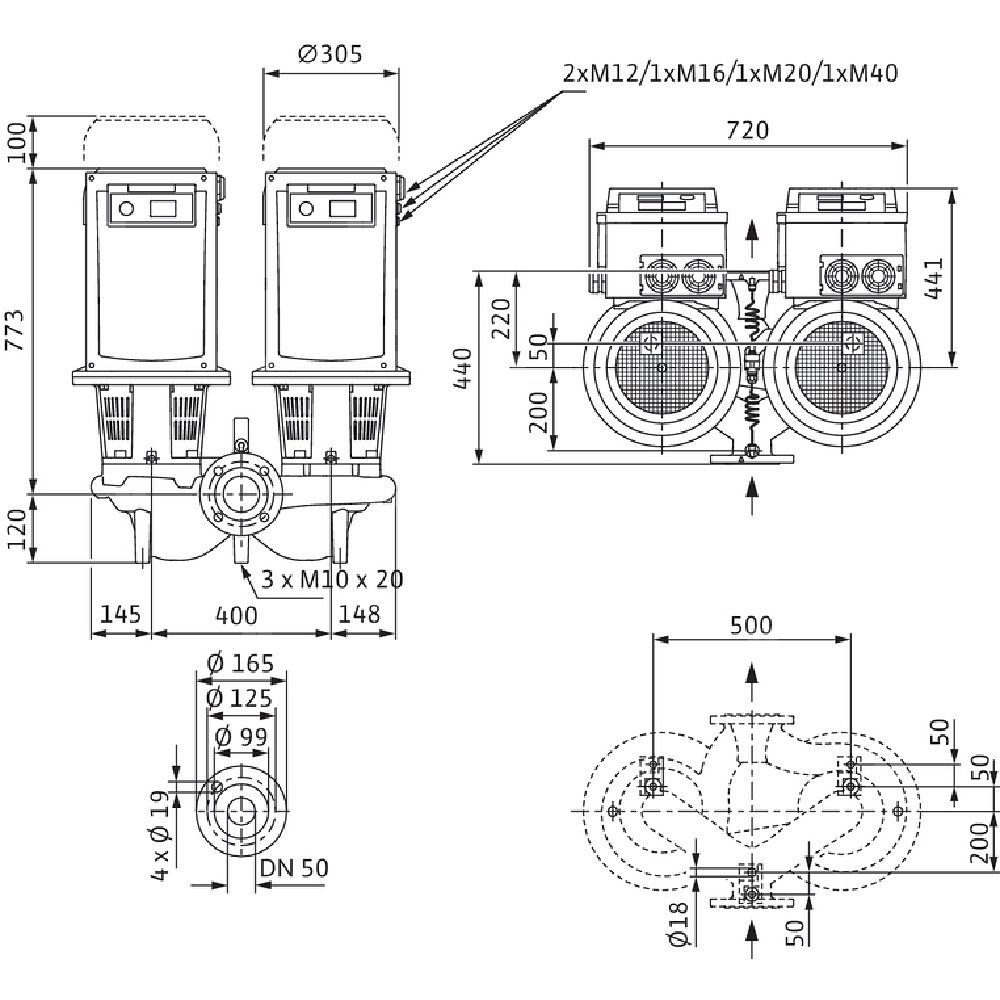 Pompa obiegowa WILO CronoTwin-DL-E 50/220-15/2-R1-IE4 typu in-line z silnikiem znormalizowanym 50/60 Hz, moc silnika 15kW 25.5 A 2900 obr/min, wlot Kołnierz DN 50