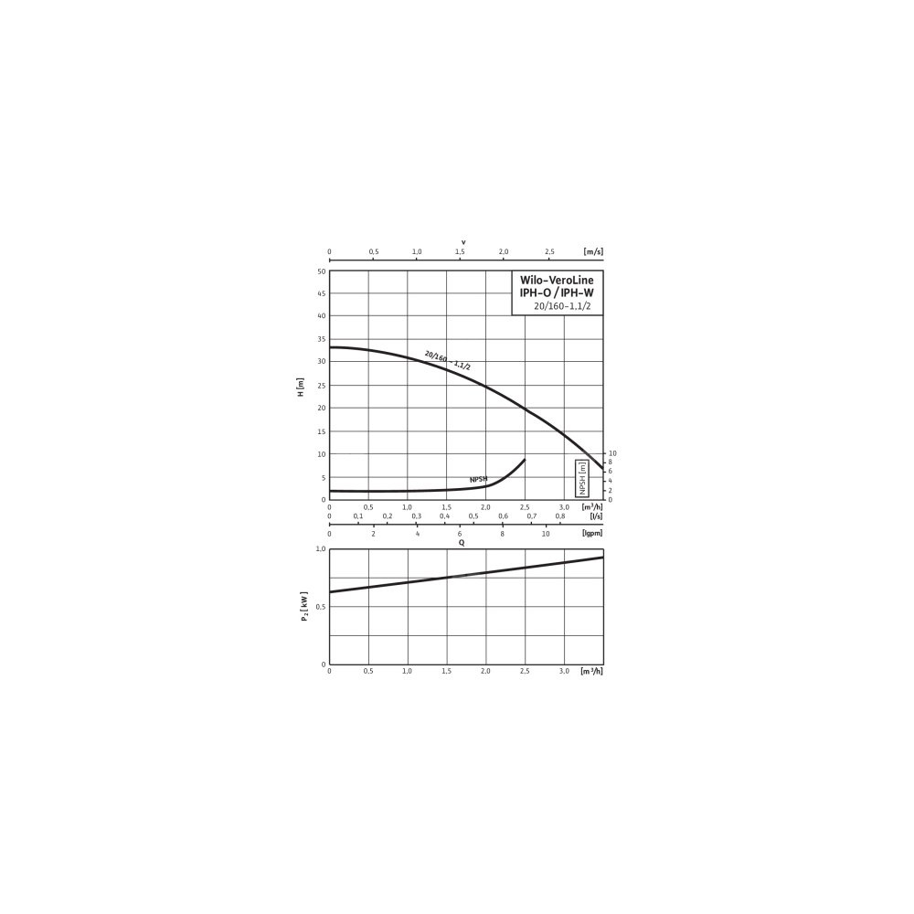 Pompa obiegowa WILO VeroLine-IP-O 20/160-1,1/2-IE3 typu in-line z silnikiem znormalizowanym 50 Hz, moc silnika 1.1kW 2.25 A 2825 obr/min, wlot Kołnierz
