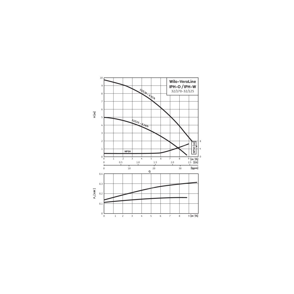 Pompa obiegowa WILO VeroLine-IPH-O 32/125-0,18/4 typu in-line z silnikiem znormalizowanym 50 Hz, moc silnika 0.18kW 0.62 A 1410 obr/min, wlot Kołnierz DN 32