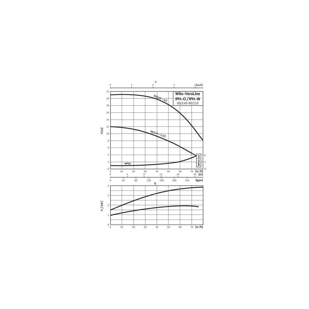 Pompa obiegowa WILO VeroLine-IPH-W 80/110-2,2/2-IE3 typu in-line z silnikiem znormalizowanym 50 Hz, moc silnika 2.2kW 4 A 2850 obr/min, wlot Kołnierz DN 80