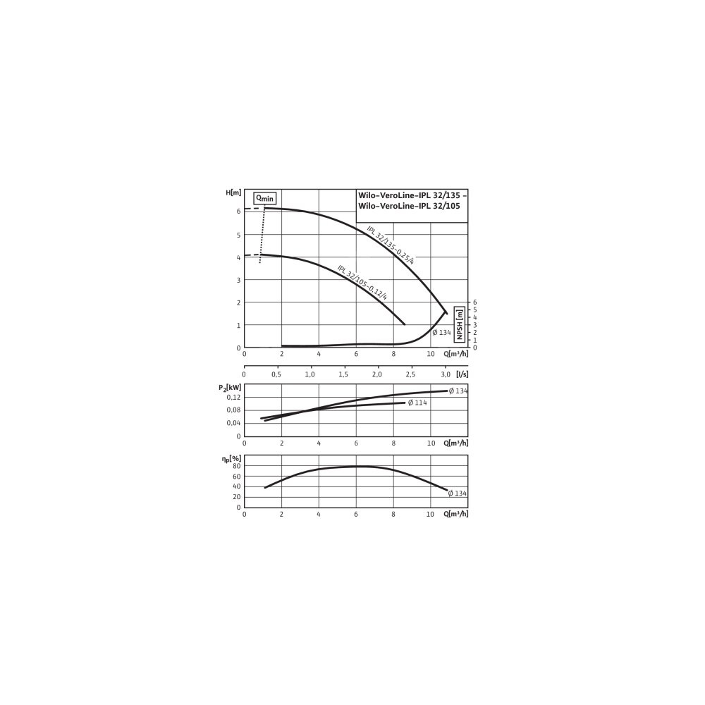 Pompa obiegowa WILO VeroLine-IPL 32/135-0,25/4 typu in-line z silnikiem znormalizowanym 50 Hz, moc silnika 0.25kW 0.69 A 1450 obr/min, wlot Kołnierz DN 32