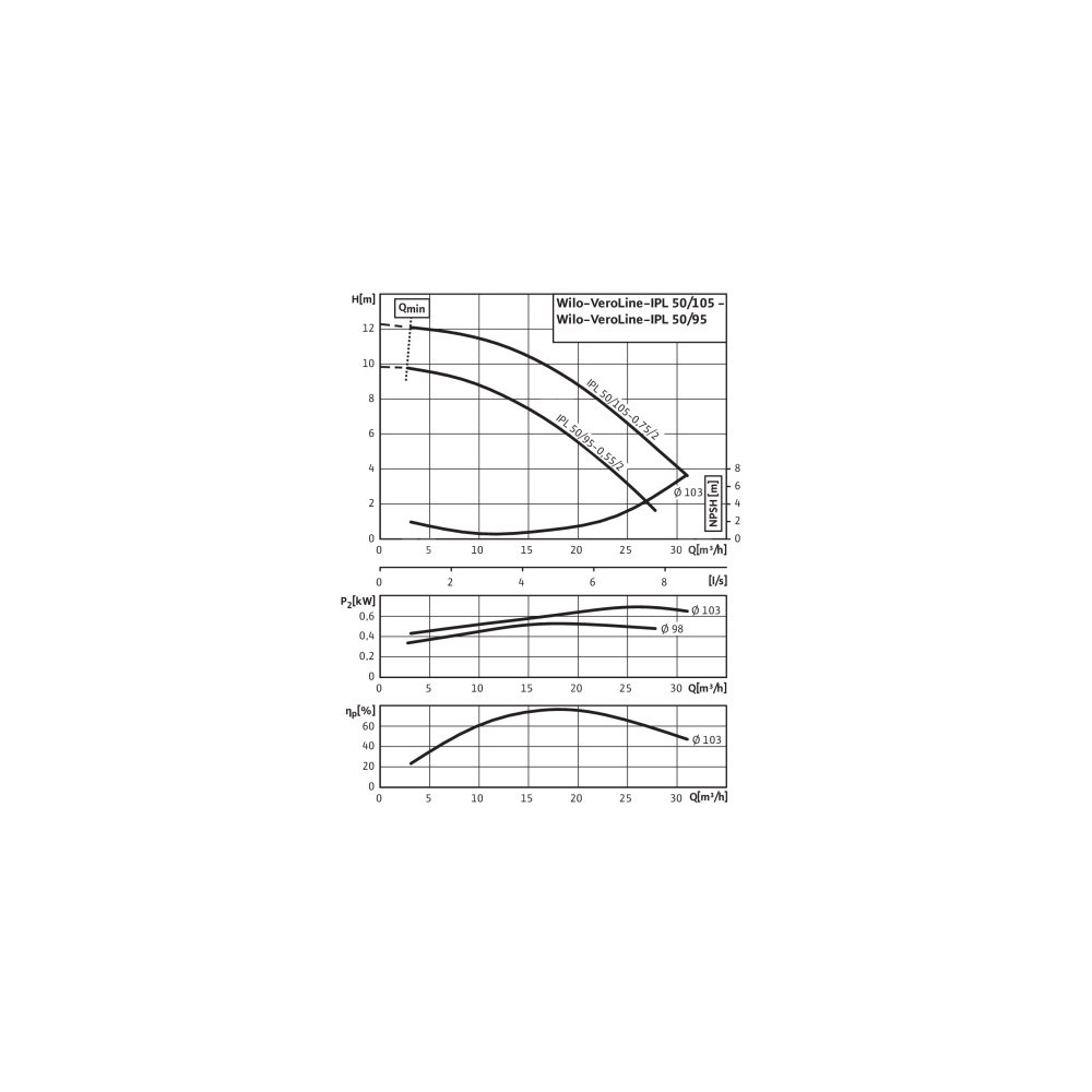 Pompa obiegowa WILO VeroLine-IPL 50/105-0,75/2-IE3 typu in-line z silnikiem znormalizowanym 50 Hz, moc silnika 0.75kW 1.84 A 2900 obr/min, wlot Kołnierz DN 50