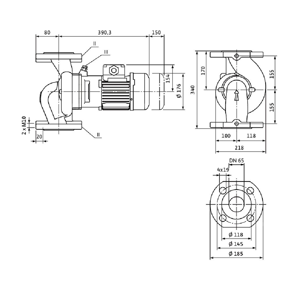 Pompa obiegowa WILO VeroLine-IPL 65/115-1,5/2-IE3 typu in-line z silnikiem znormalizowanym 50 Hz, moc silnika 1.5kW 3.18 A 2900 obr/min, wlot Kołnierz DN 65