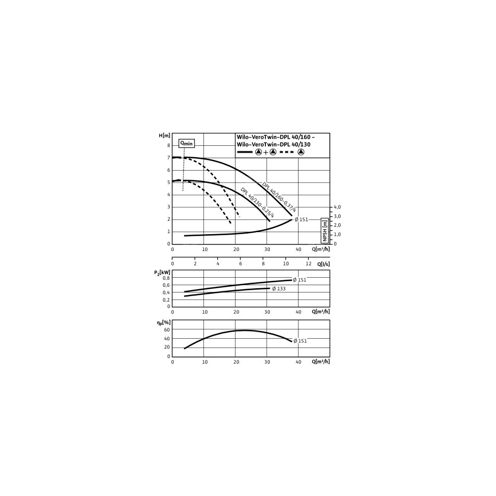 Pompa obiegowa WILO VeroTwin-DPL 40/130-0,25/4 typu in-line z silnikiem znormalizowanym 50 Hz, moc silnika 0.25kW 0.69 A 1450 obr/min, wlot Kołnierz DN 40