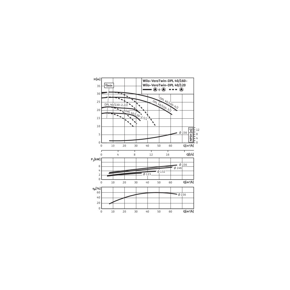 Pompa obiegowa WILO VeroTwin-DPL 40/160-4/2-IE3 typu in-line z silnikiem znormalizowanym 50 Hz, moc silnika 4kW 7.75 A 2900 obr/min, wlot Kołnierz DN 40