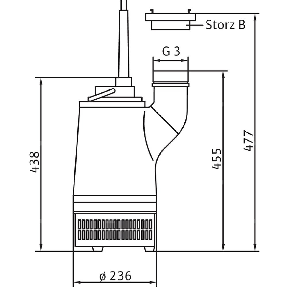 Całkowicie zanurzona pompa zatapialna do wody zanieczyszczonej, pionowe ustawienie mokre, do tłoczenia wody zanieczyszczonej i zawierającej piasek Korpus hydrauliczny i wirnik z żeliwa szarego, korpus silnika z aluminium. Przyłącze tłoczne z centrycznym i pionowym odpływem ciśnieniowym i złączem typu Storz. Silnik chłodzony powierzchniowo w wersji na prąd trójfazowy z chłodzeniem płaszczowym i komorą uszczelnienia. Odłączany kabel zasilający z wyłącznikiem pływakowym i wtyczką wg standardu CEE z funkcją zamiany faz. Uszczelnienie zapewniają dwa niezależne od kierunku obrotów uszczelnienia mechaniczne. Agregat można stosować w podsysającym trybie pracy bez ograniczeń.