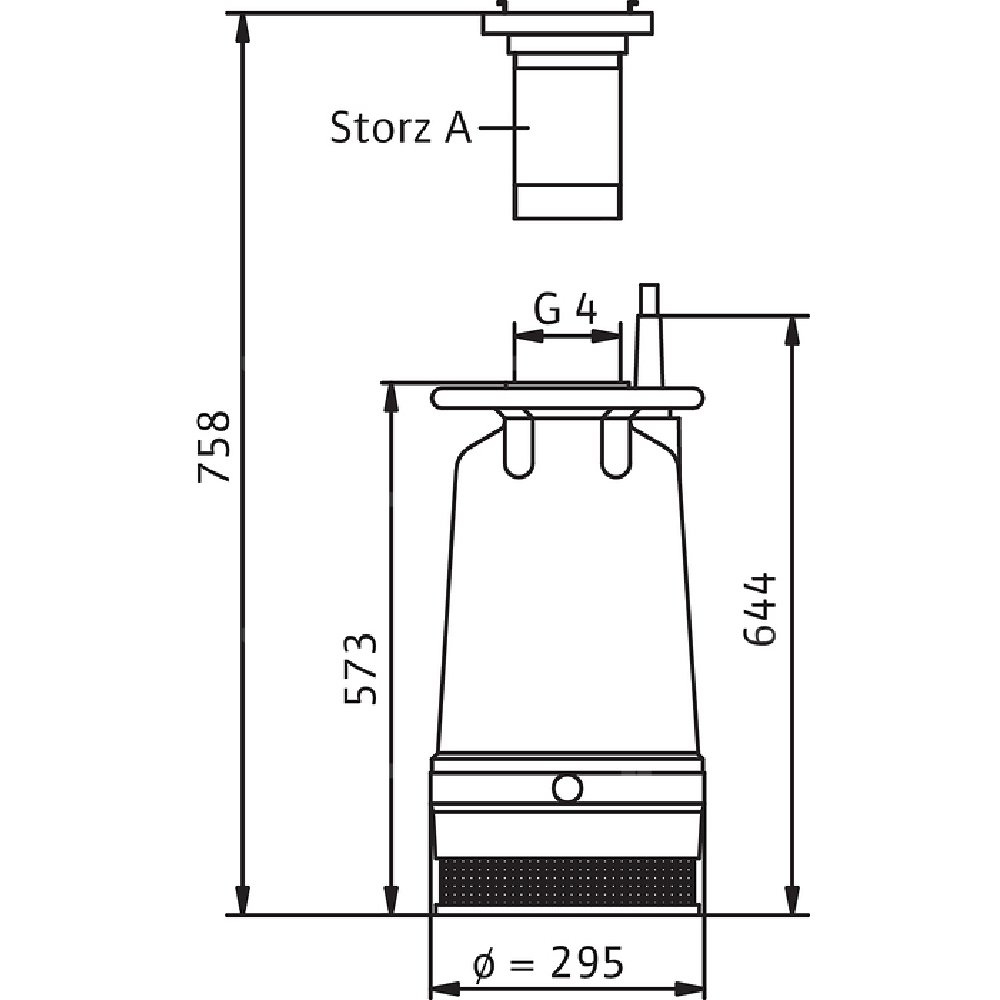 Całkowicie zanurzona pompa zatapialna do wody zanieczyszczonej, pionowe ustawienie mokre, do tłoczenia wody zanieczyszczonej i zawierającej piasek Korpus hydrauliczny i wirnik z żeliwa szarego, korpus silnika z aluminium. Przyłącze tłoczne z centrycznym i pionowym odpływem ciśnieniowym i złączem typu Storz. Silnik chłodzony powierzchniowo w wersji na prąd trójfazowy z chłodzeniem płaszczowym i komorą uszczelnienia. Rozłączny kabel zasilający z wtyczką wg standardu CEE z funkcją zamiany faz. Uszczelnienie zapewniają dwa niezależne od kierunku obrotów uszczelnienia mechaniczne. Agregat można stosować w podsysającym trybie pracy bez ograniczeń.