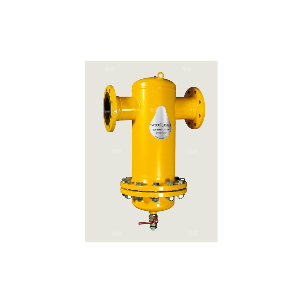 Separator zanieczyszczeń SPIROTRAP stalowy Hi-flow, rozbieralny. Jest to urządzenie bezobsługowe, pracujące bez siatek i filtrów, zapewniające ciągłą separację zanieczyszczeń stałych do najdrobniejszych cząstek, utrzymując instalację w stanie uzdatnienia - wolną od zanieczyszczeń. SPIROTRAP wykonywany jest w wersji Hi-flow głównie dla instalacji chłodniczych - duże przepływy czynnika - większe niż w instalacjach ciepłowniczych. Wykonanie ze stali na rurociągi poziome DN50-DN300, połączenia kołnierzowe lub do wspawania - wersja rozbieralna (możliwość wyjęcia siatek - rur SPIRO).
