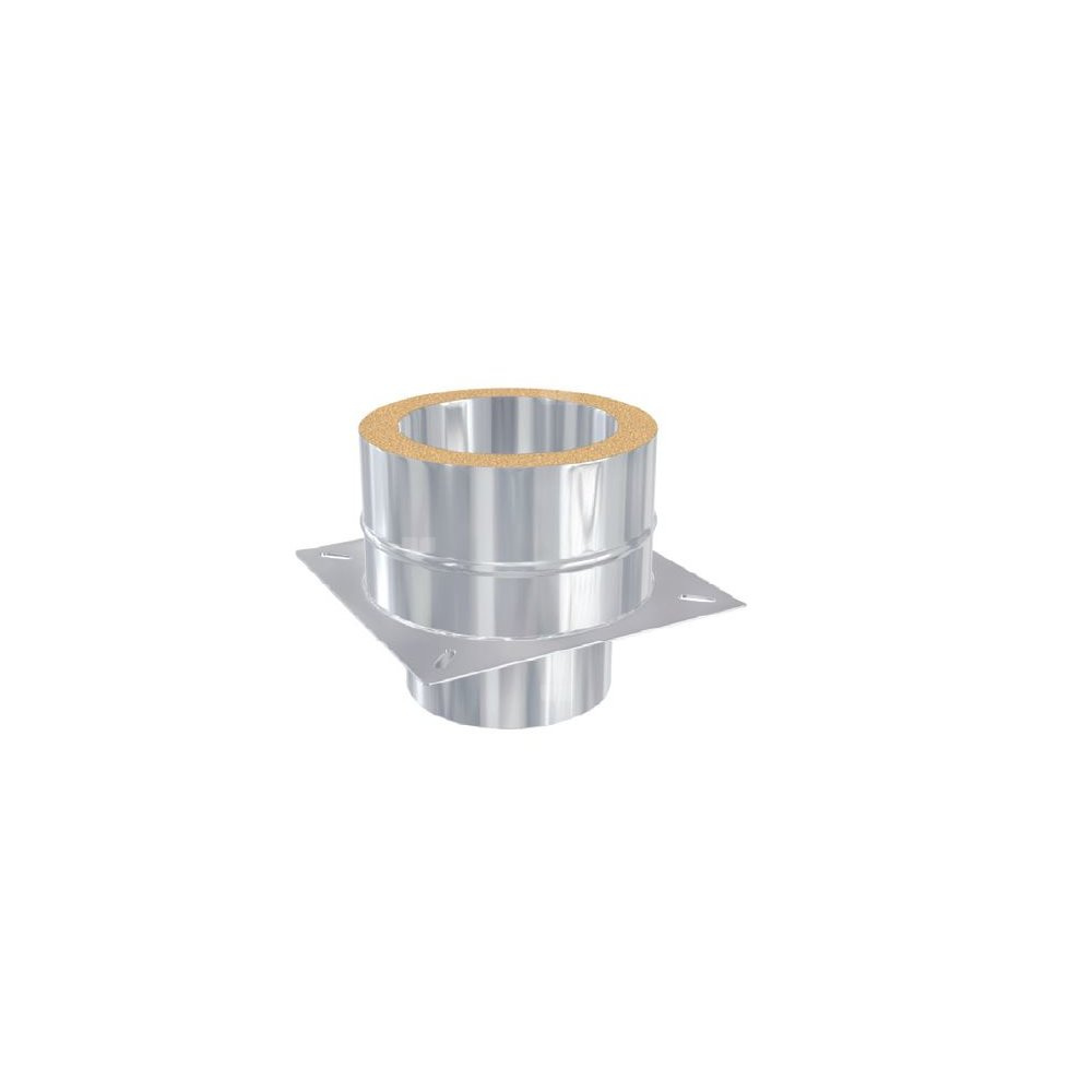 Płyta kotwowa KFTP umożliwia przejście z systemu jednościennego MKS na dwuścienny system MKD w przypadku, gdy układ odprowadzania spalin jest częściowo jako wkład kominowy i częściowo jako komin zewnętrzny.