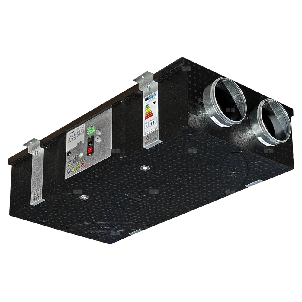 Rekuperator BREVA 200 płaski z by-passem, obudowa EPP wzmacniana metalowym stelażem, do podwieszenia pod sufitem lub lokalizacji na podłodze, wyposażony w sterownik EVO LT
