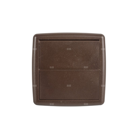 Gniazdo wyrzutowe w kolorze brązowym, Stosowane na zewnątrz budynku, w celu zabezpieczenia instalacji przed dostaniem się do niej zanieczyszczeń i owadów, Po uruchomieniu odkurzacza, klapa gniazda wyrzutowego unosi się i umożliwia wyrzut powietrza z odkurzacza na zewnątrz budynku, Po wyłączeniu się jednostki klapa opada i zamyka szczelnie system,