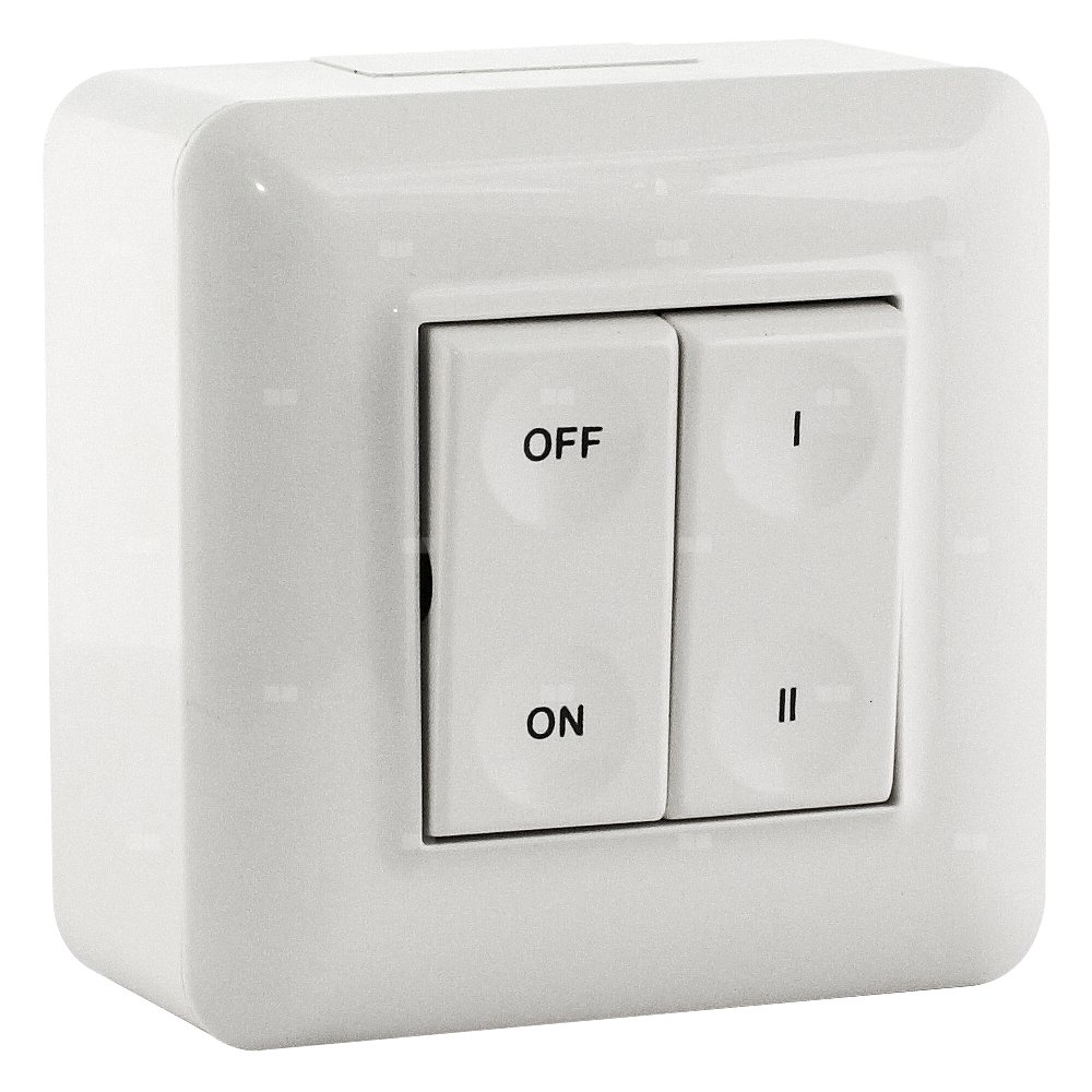 REGUL-2 - Przełącznik biegów (0-I-II) przeznaczony wyłącznie do wentylatorów z dwu- lub trzybiegowymi silnikami jednofazowymi (230 V, 50 Hz). Montaż natynkowy.