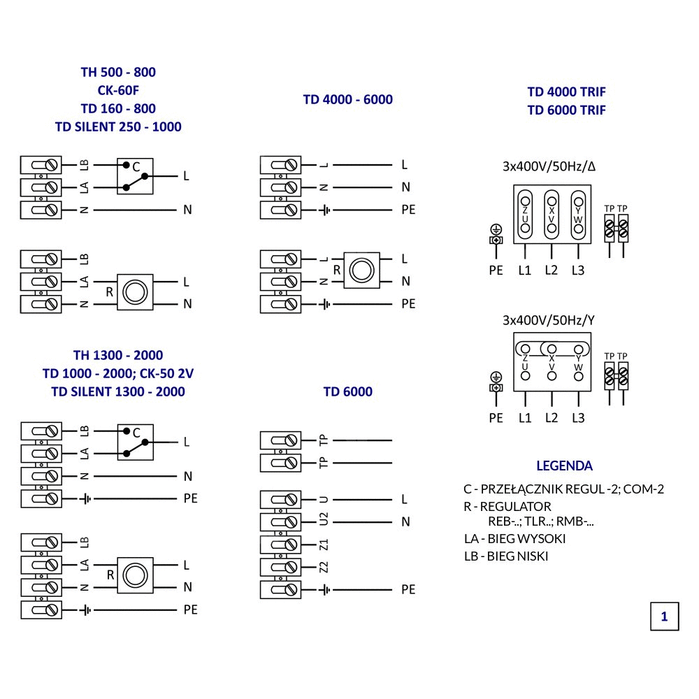 - jednostopniowe modele TD dostępne w średnicach 355 i 400 mm (modele TD-4000/355 i TD-6000/400),