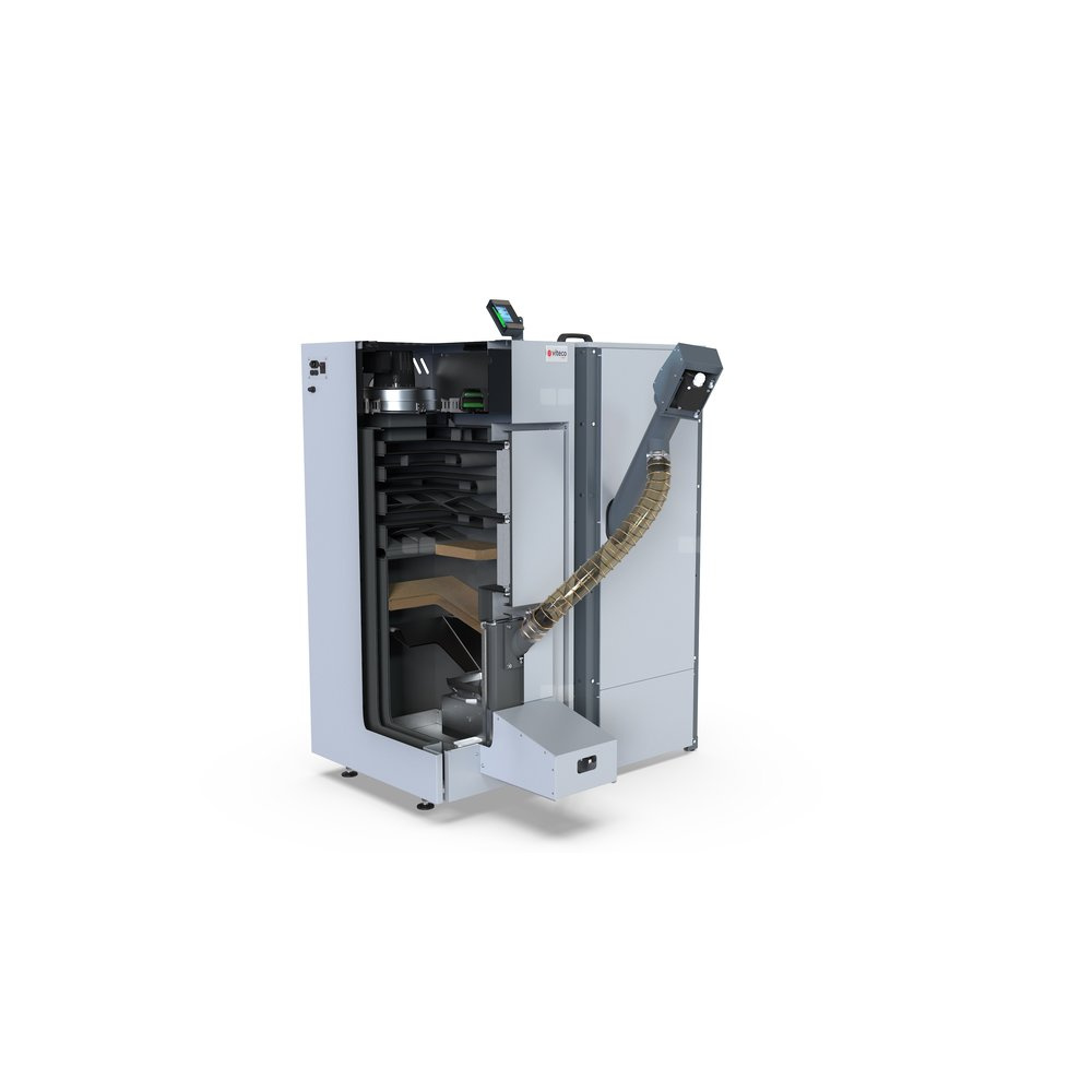 Kocioł na pellet VITECO HEAT NextPell Plus z palnikiem samoczyszczącym Defro zamontowanym od frontu 12 kW z zasobnikiem o pojemności 235 l