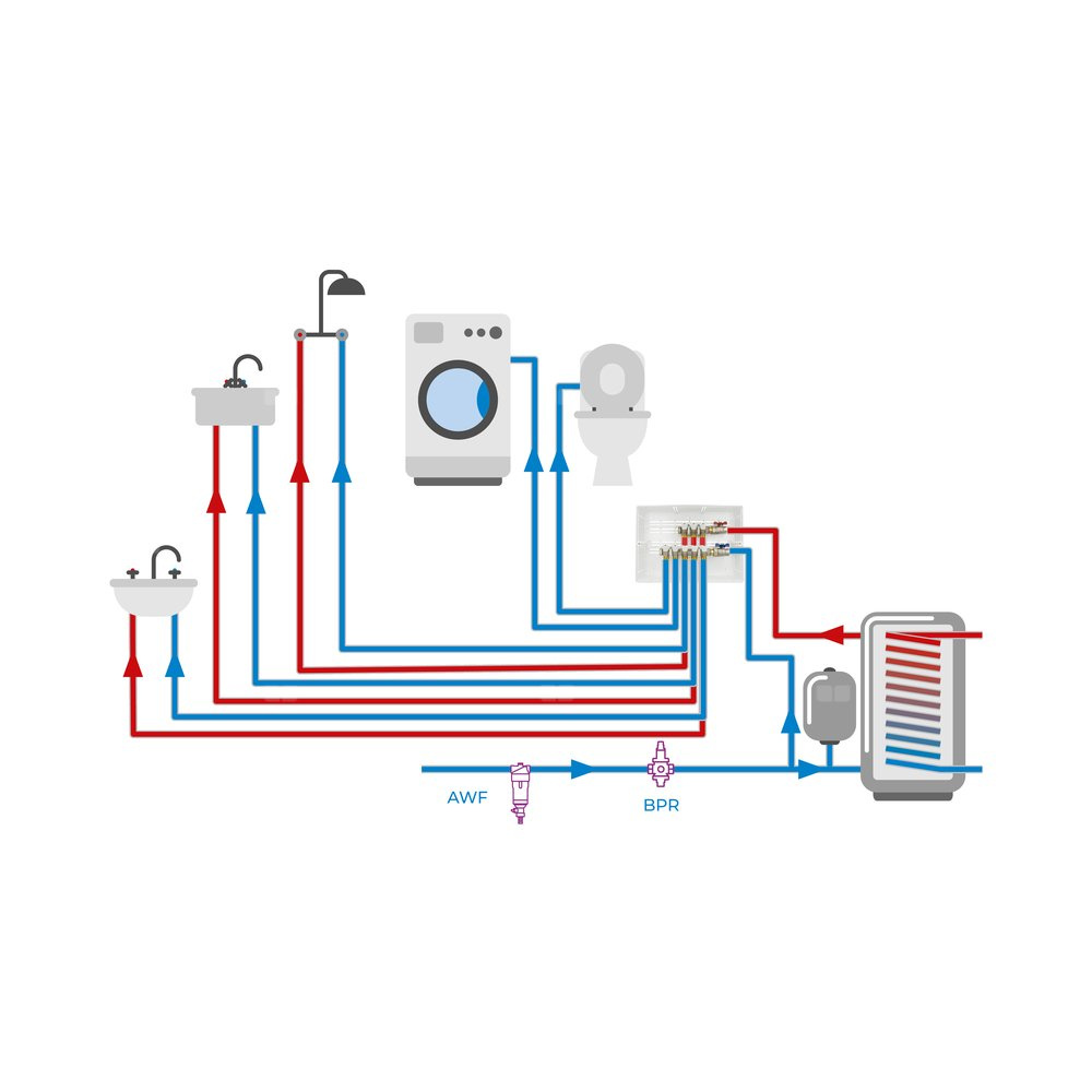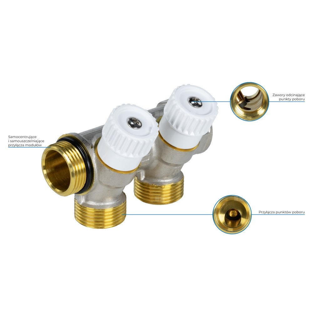Stosowany w instalacjach wody użytkowej.Montowany do istniejącego rozdzielacza w szafce rozdzielacza.