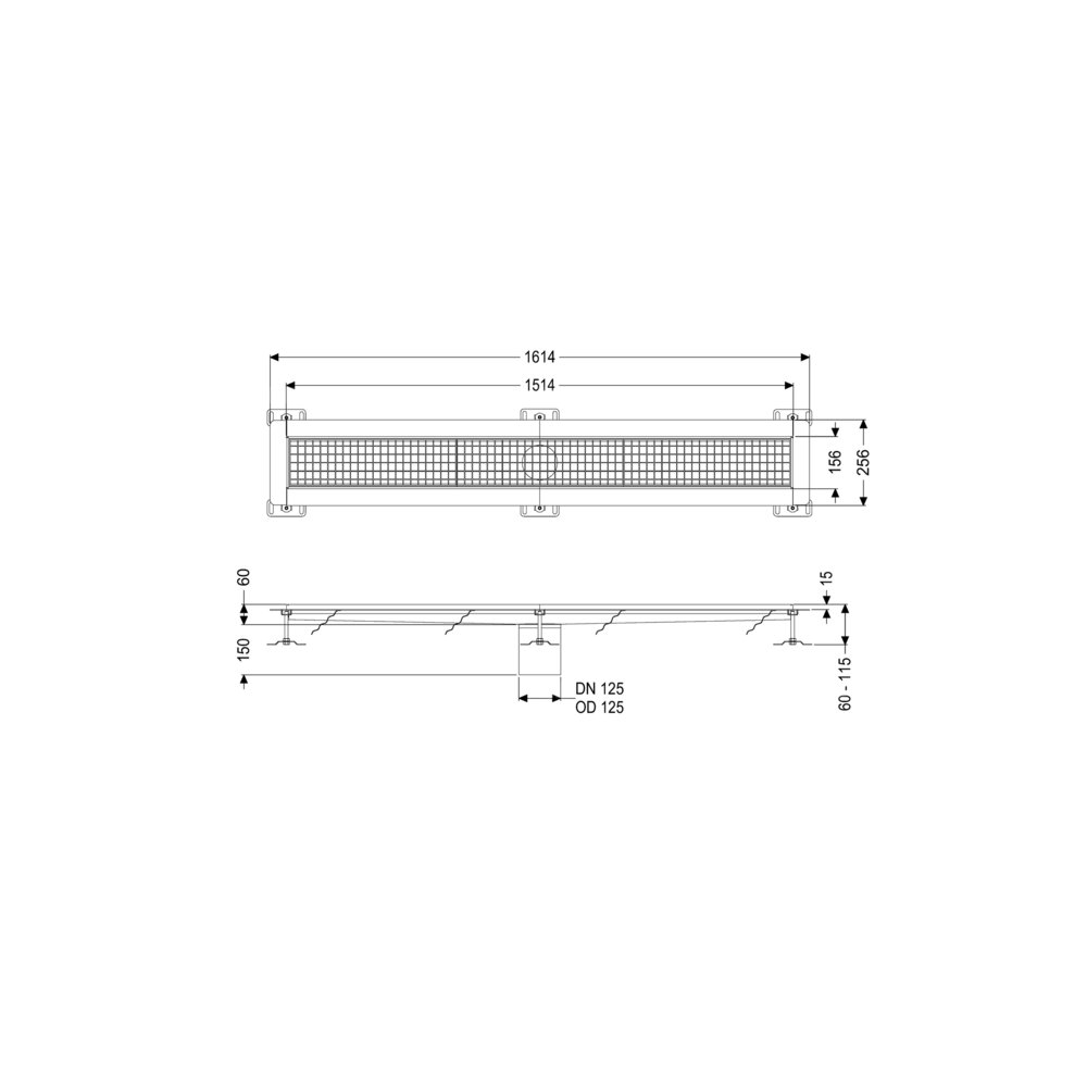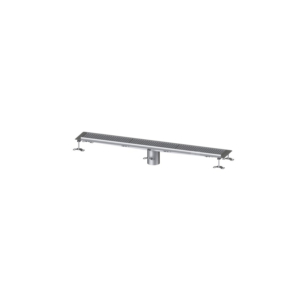 Odpływ szczelinowy Ferrofix z blachy ze stali nierdzewnej o grubości 2,0 mm (wytrawiany zanurzeniowo) posiada widoczne elementy szlifowane, spadek podłużny i poprzeczny, nóżki do poziomowania wysokości, dospawane poprzeczki dystansowe do zabezpieczenia rusztów oraz króciec odpływowy ze stali nierdzewnej.