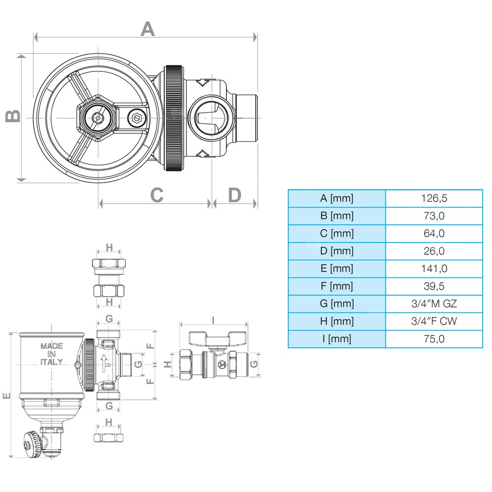 ZAWARTOŚĆ:Magnetyczny, kompaktowy separator zanieczyszczeń wyposażony w komorę cyklonową z osadnikiem oraz filtrem 300 µm do instalacji c.o. GZ ¾ zbudowany jest z: