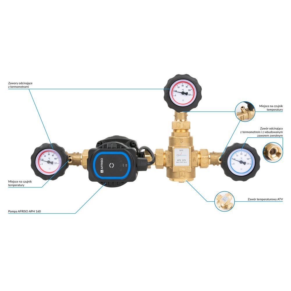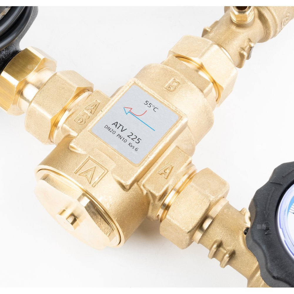 Grupa ochrony powrotu kotła BTA 110 AP z zaworem temperaturowym ATV, 3x GW G1'', 55 st. C, Kvs 6, AFRISO APH 15-7/130