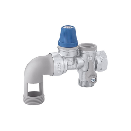 Hydrauliczna grupa bezpieczeństwa do zasobników c.w.u. z zaworem odcinającym i zaworem zwrotnym z możliwością nadzoru. Do instal