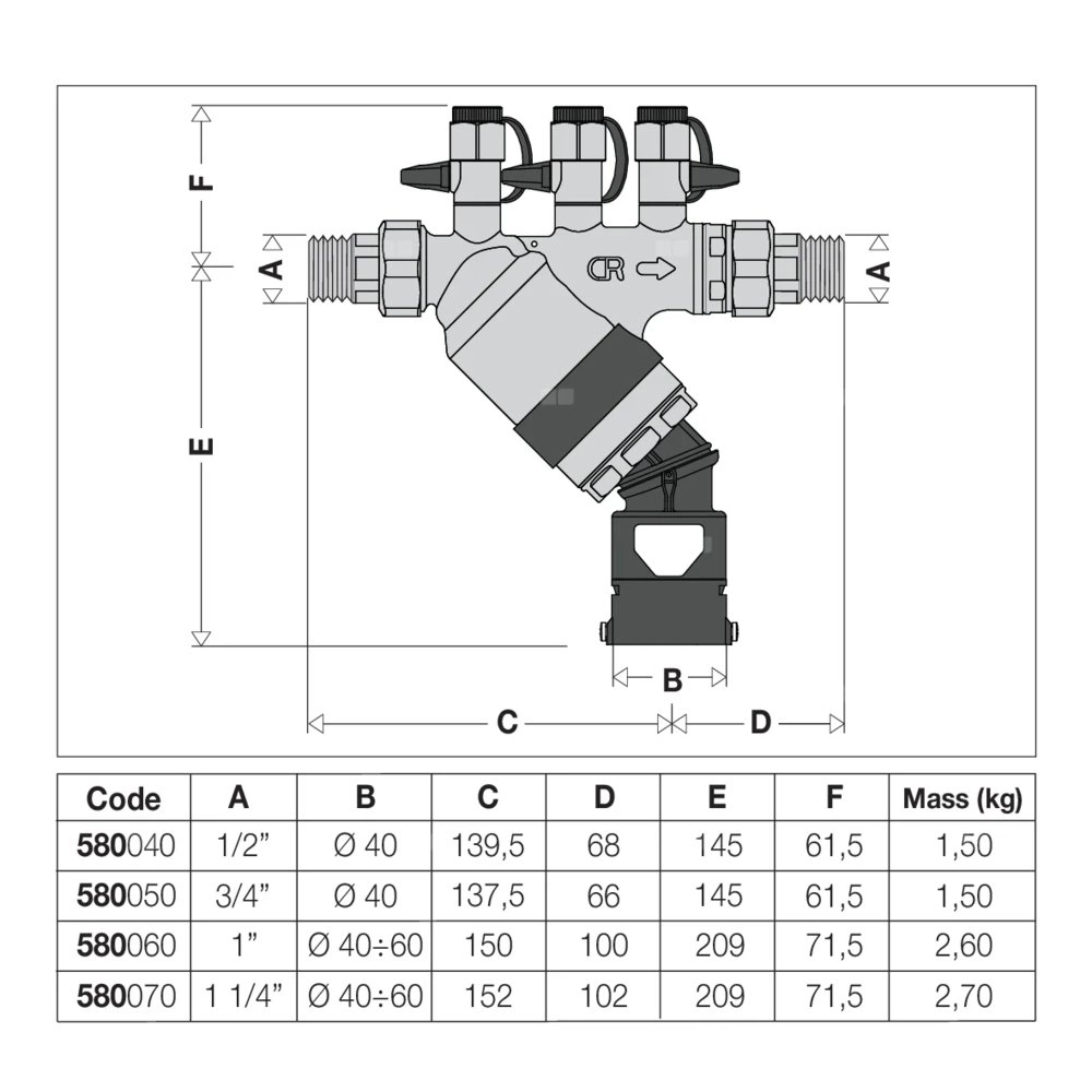 Izolator przepływów zwrotnych ze strefą obniżonego ciśnienia z możliwością nadzoru, typu BA. Złączki z gwintem wewnętrznym. Zgodny z PN EN 12729. Wyposażony w filtr na wlocie. Montaż na rurę pionową lub poziomą. Przyłącze: R 1 1/4" (EN 10226-1) GZ, złączka. Zakres temperatury medium: 0–65 °C. PN (Ciśnienie nominalne): PN 10. DN: DN 32 (korpus). Materiał: stop mosiądzu odporny na odcynkowanie.