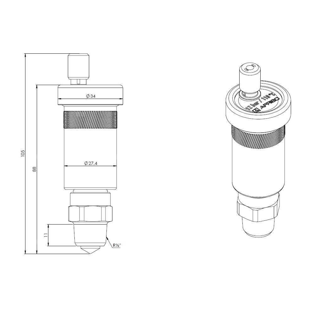 Odpowietrznik automatyczny AFRISO PrimoVent z Aquastop i zaworem stopowym GZ mosiądz niklowany fi 1/2''