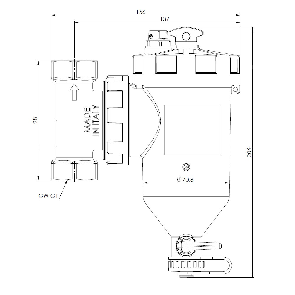 Zawór spustowy ułatwia usuwanie zanieczyszczeń.