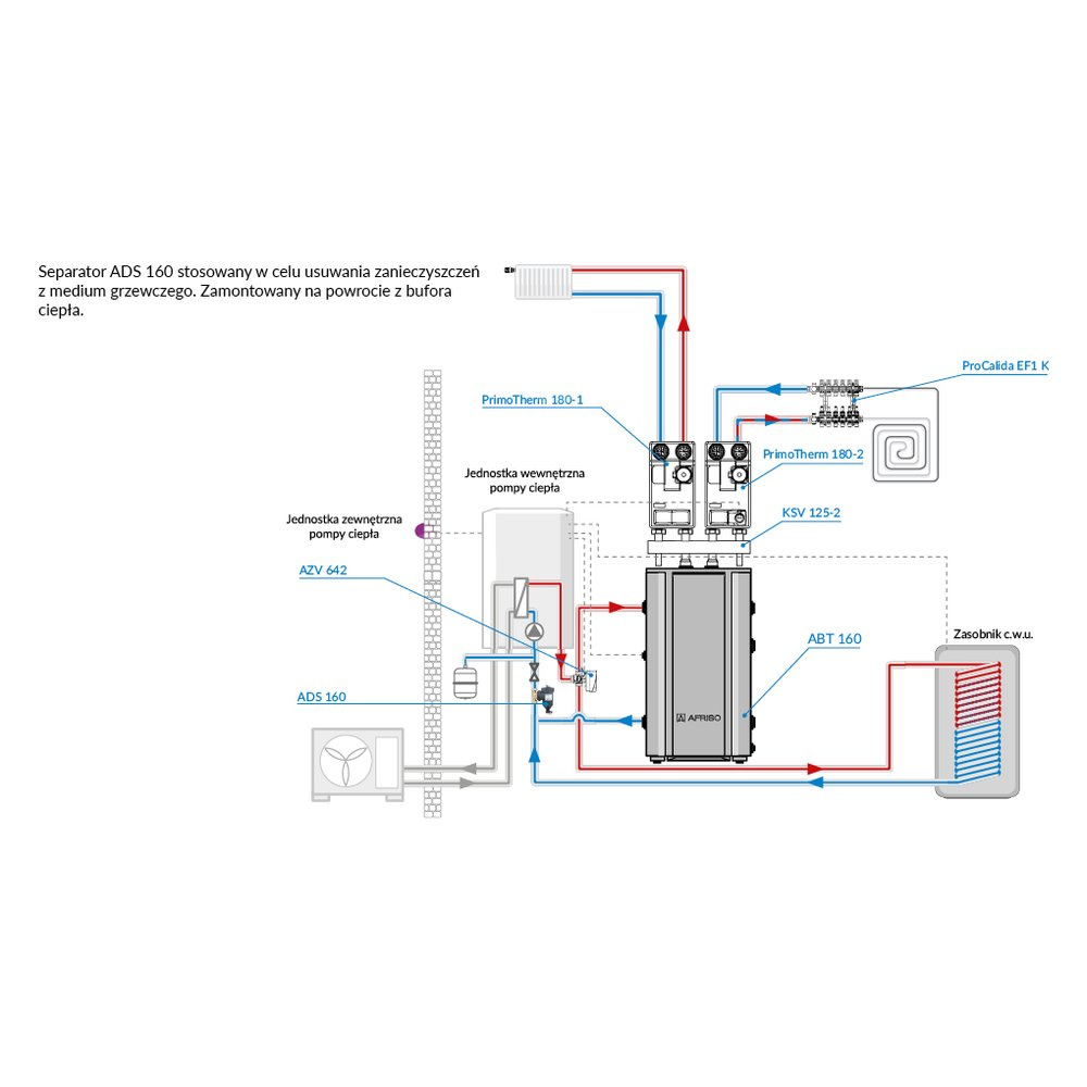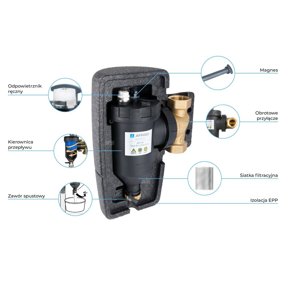 Separator AFRISO ADS 160, do C.O., do klimatyzacji, 3 bar / 90'C, 1'' (GW), z wkładem magnesowymInstalacje i źródła ciepła, z izolacją