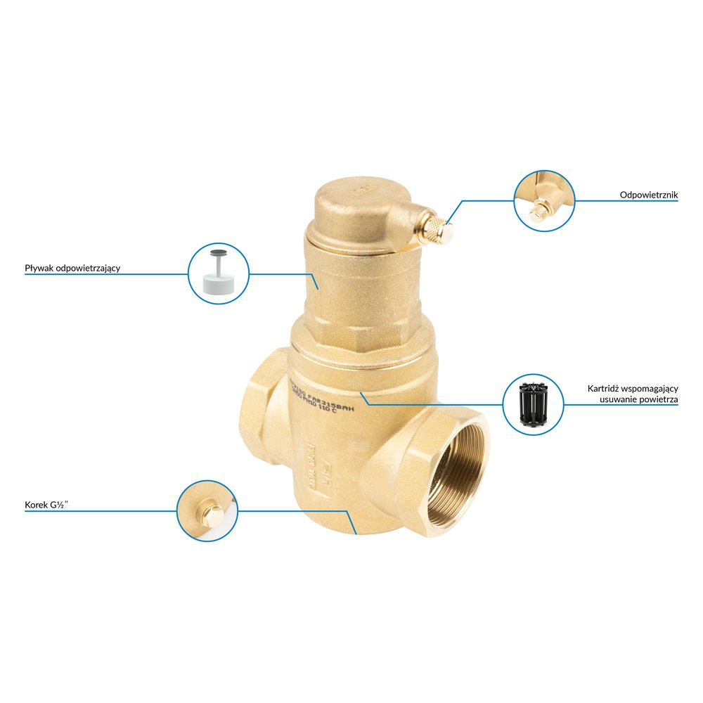 Korek można zastąpić zaworem spustowym, żeby usunąć zanieczyszczenia.
