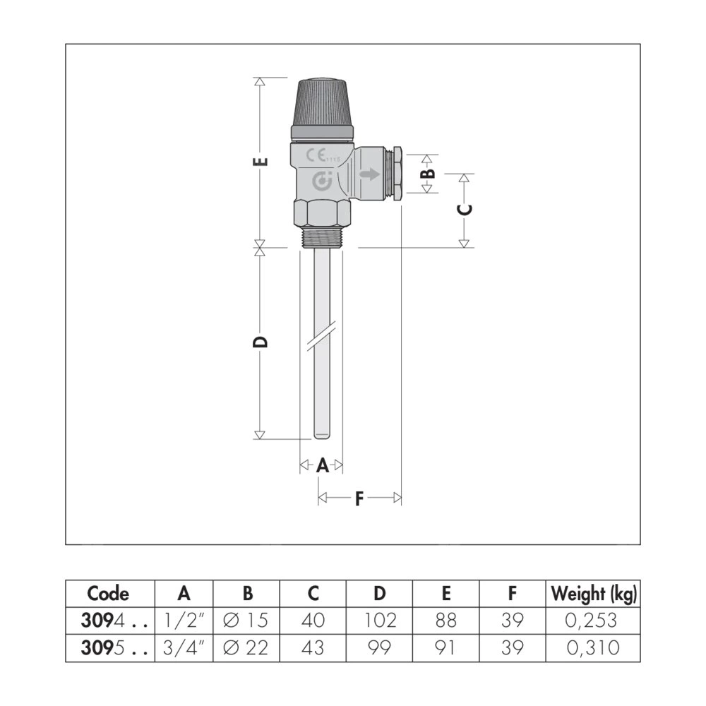 Zawór bezpieczeństwa temperaturowo-ciśnieniowy. Dla instalacji solarnych w celu ochrony zasobników c.w.u. 3/4" GZ x O 22 7 bar