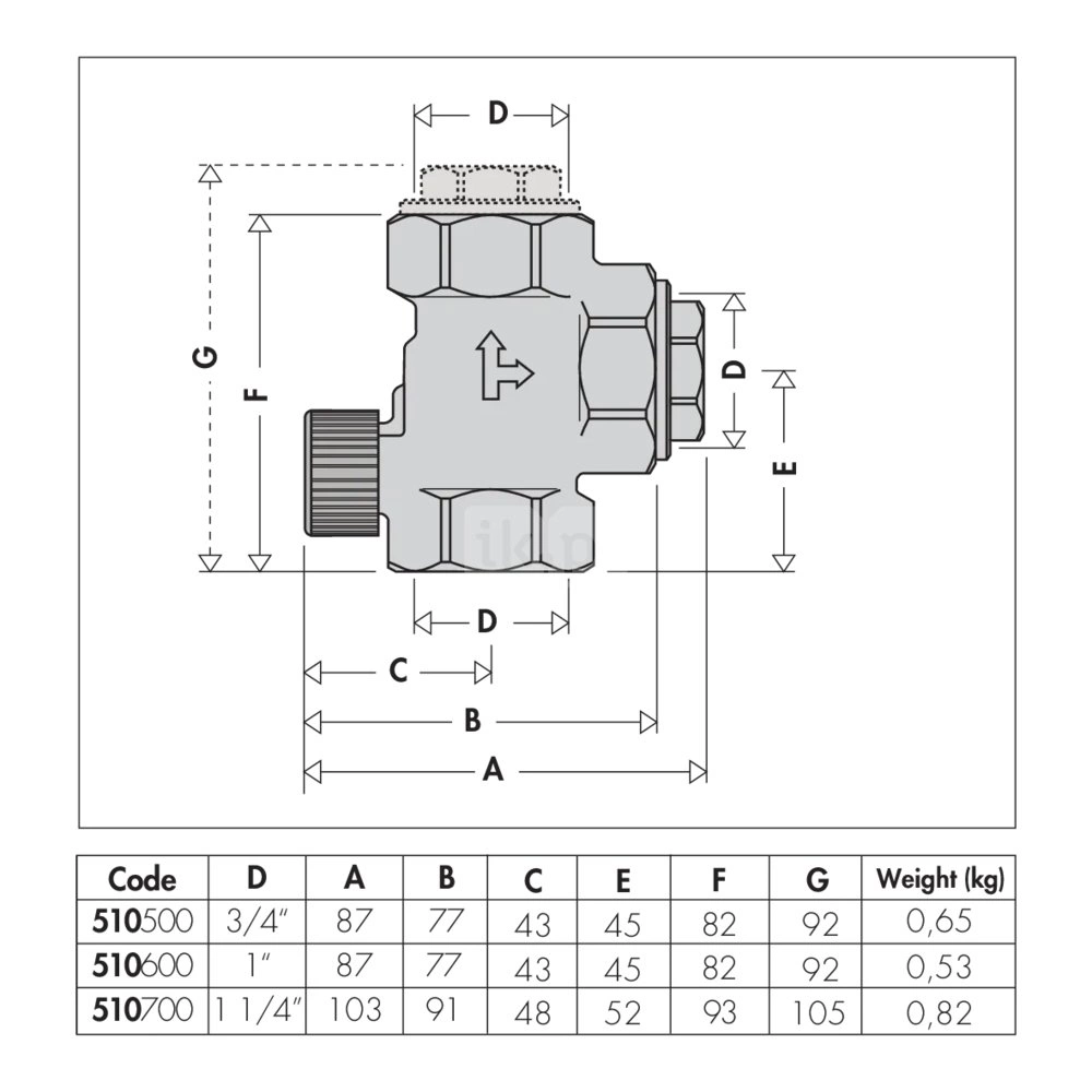 Zawór zwrotny zapobiegający cyrkulacji grawitacyjnej Możliwość instalacji prostej lub kątowej Przyłącze: G 1" (ISO 228-1) GW. Maksymalne ciśnienie pracy: 10 bar. Zakres temperatury medium: 5–110 °C.